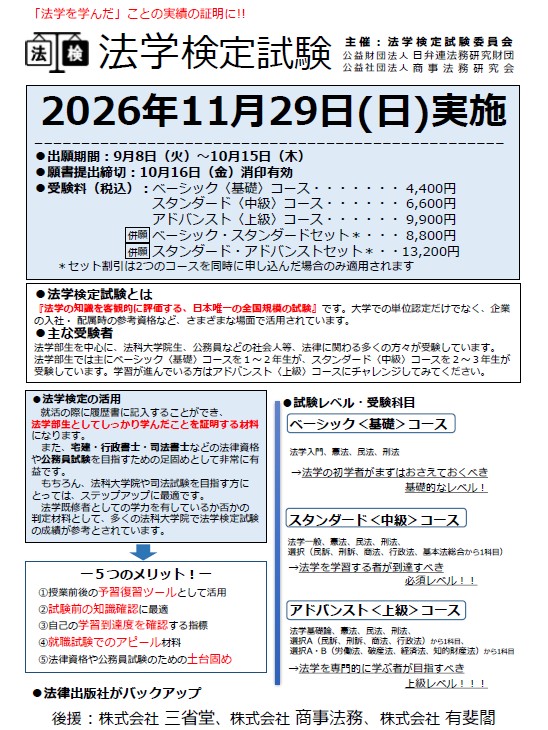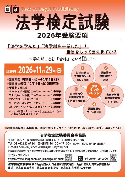 ご不明な点はQ&Aをご覧ください→法学検定試験Q&A